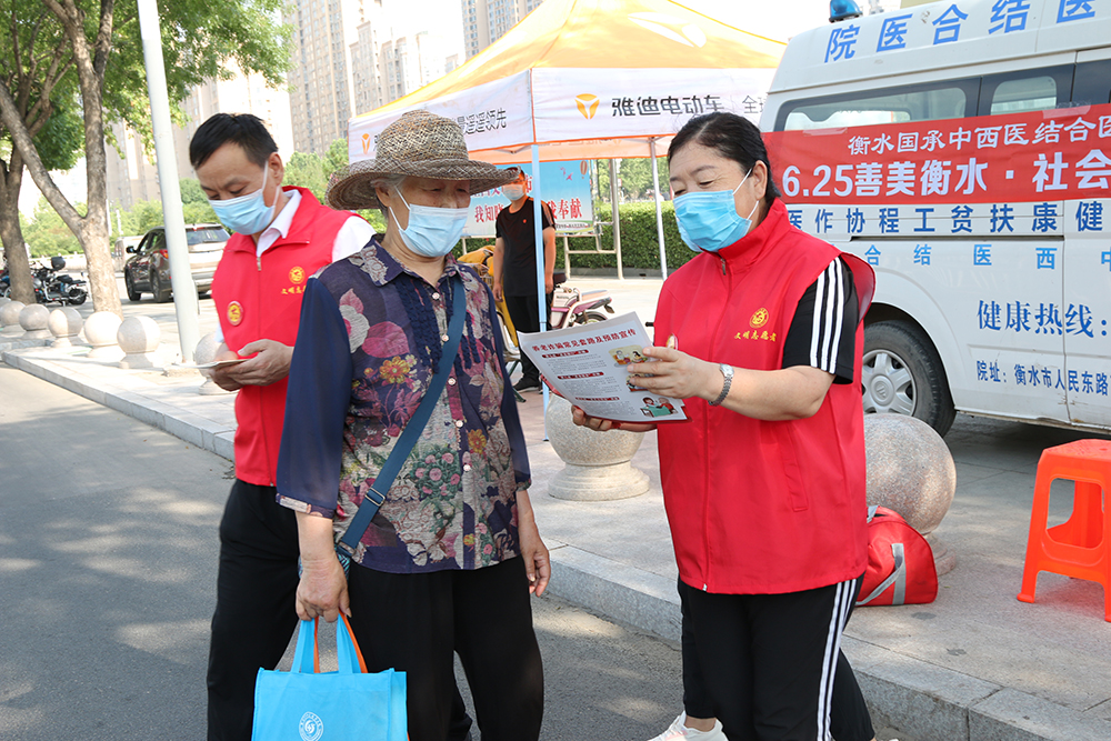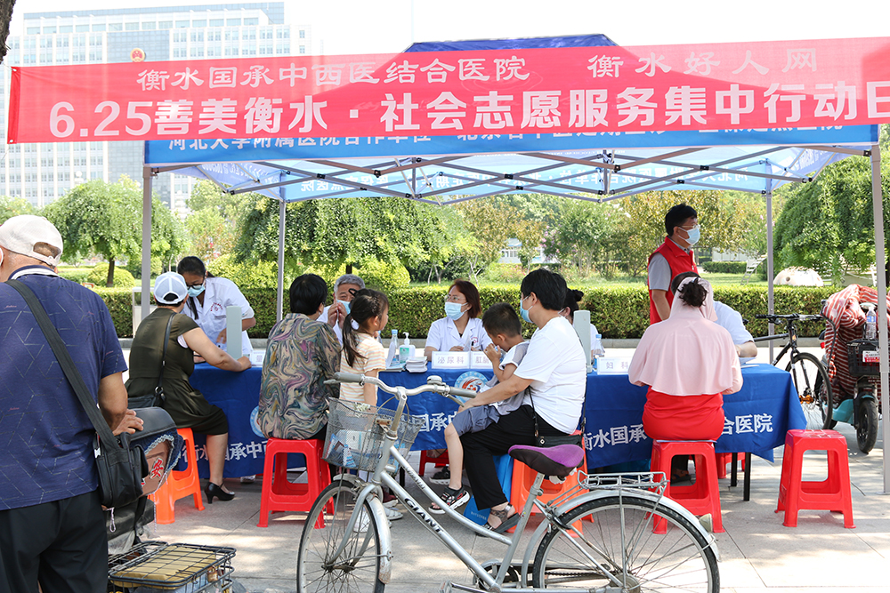为积极响应上级“关于开展善美衡水·社会志愿服务行动月”的文件精神,6月25日一大早,衡水国承中西医结合医院精心组织了由中医科、内科、外科、妇科、肛肠科、护理部等十余名业务骨干组成的医疗志愿服务队与衡水好人网志愿服务队一同到市政府广场参加“善美衡水·社会志愿服务集中行动日活动”,为广大市民提供健康咨询、义诊、查体、健康宣教、免费理发、修车、维持交通秩序等服务,以实际行动助力文明城市建设。