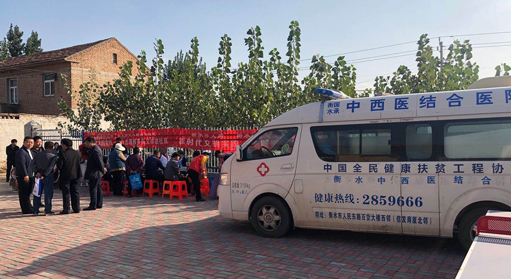 10月16日,在第七个国家扶贫日到来之际,衡水国承中西医结合医院医疗志愿服务队到枣强王吉利村、王进伯村开展新时代文明实践暨健康扶贫活动。本次活动医院组织了中医科、外科、妇科、肛肠科、护理部、超声科等医护组成的医疗志愿服务队。现场为村民进行量血压、测血糖、彩超检查、健康咨询、疾病防治指导、健康宣教等服务,受到广大村民的欢迎。