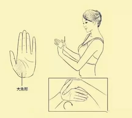 方法很简单:对搓两手大鱼际,直到搓热为止。