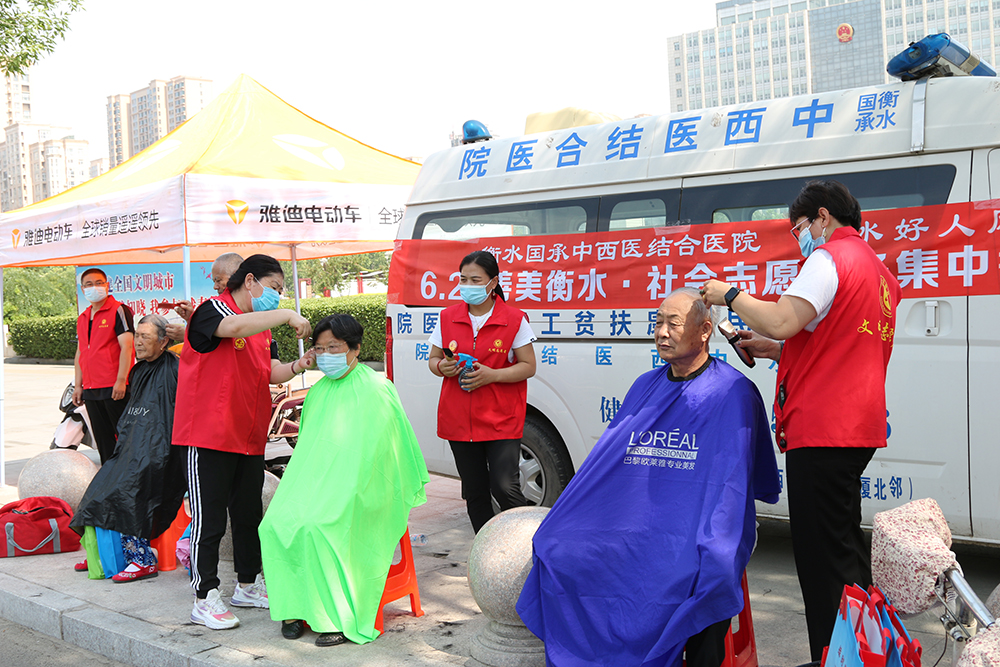 为积极响应上级“关于开展善美衡水·社会志愿服务行动月”的文件精神,6月25日一大早,衡水国承中西医结合医院精心组织了由中医科、内科、外科、妇科、肛肠科、护理部等十余名业务骨干组成的医疗志愿服务队与衡水好人网志愿服务队一同到市政府广场参加“善美衡水·社会志愿服务集中行动日活动”,为广大市民提供健康咨询、义诊、查体、健康宣教、免费理发、修车、维持交通秩序等服务,以实际行动助力文明城市建设。